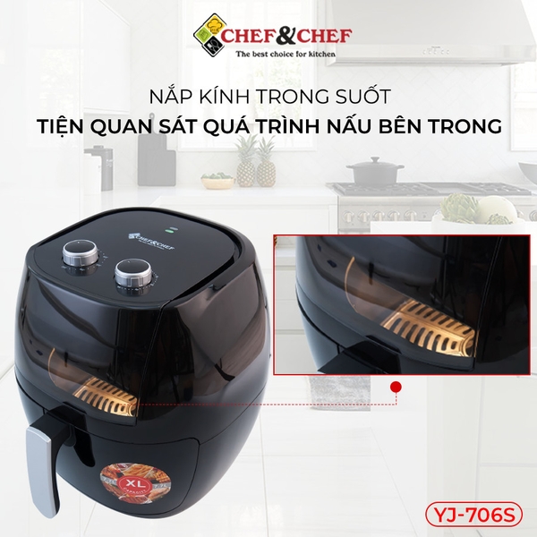 Nồi chiên không dầu Chef&Chef YJ-706S được thiết kế bắt mắt, hiện đại, kết hợp với màu đen sang trọng đem lại điểm nhấn nổi bật, sự đẳng cấp, tiện nghi cho mọi không gian bếp trong gia đình.