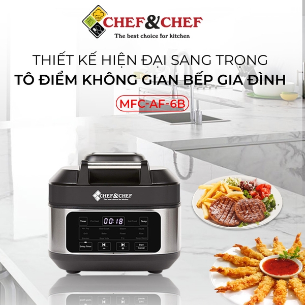Nồi nướng Chef&Chef 12in1 sở hữu thiết kế độc đáo, tinh tế đến từng chi tiết, kết hợp với phần vỏ nhựa cao cấp màu đen giúp tô điểm cho căn bếp thêm hiện đại và sang trọng.